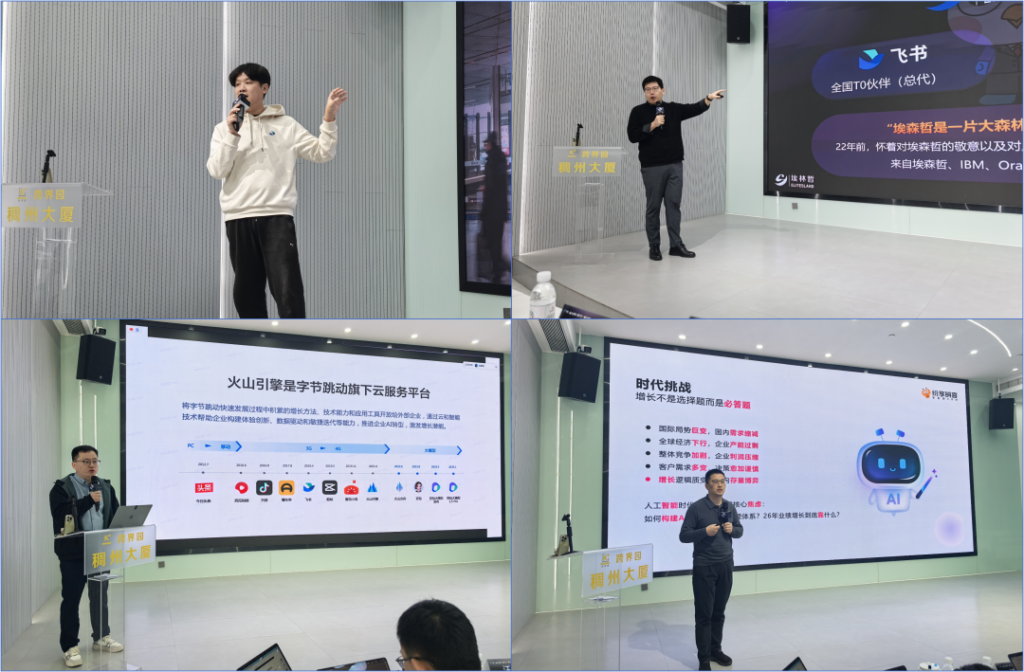 在数字化与智能化深度融合的今天,企业如何借 AI 之翼实现高效转型与突破发展,已成为时代赋予的重要课题。1 月 22 日,“轻舟计划 —— 飞书 × 火山渠道招商会・金华站” 在金华跨界园・稠州大厦一楼路演中心成功举办。埃林哲作为飞书T0级核心伙伴,叠加火山引擎VC级核心伙伴双重 buff,与众多行业精英、企业家齐聚一堂,共同探索数智化转型新路径,共绘合作共赢新蓝图。